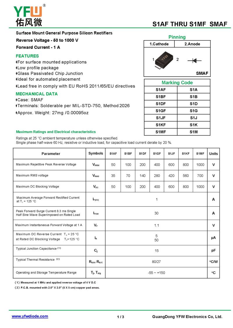 快恢復(fù)二極管S1AF 規(guī)格書_價(jià)格_PDF手冊-廣東佑風(fēng)微原廠S1AF SMAF_(YFW佑風(fēng)微)品牌